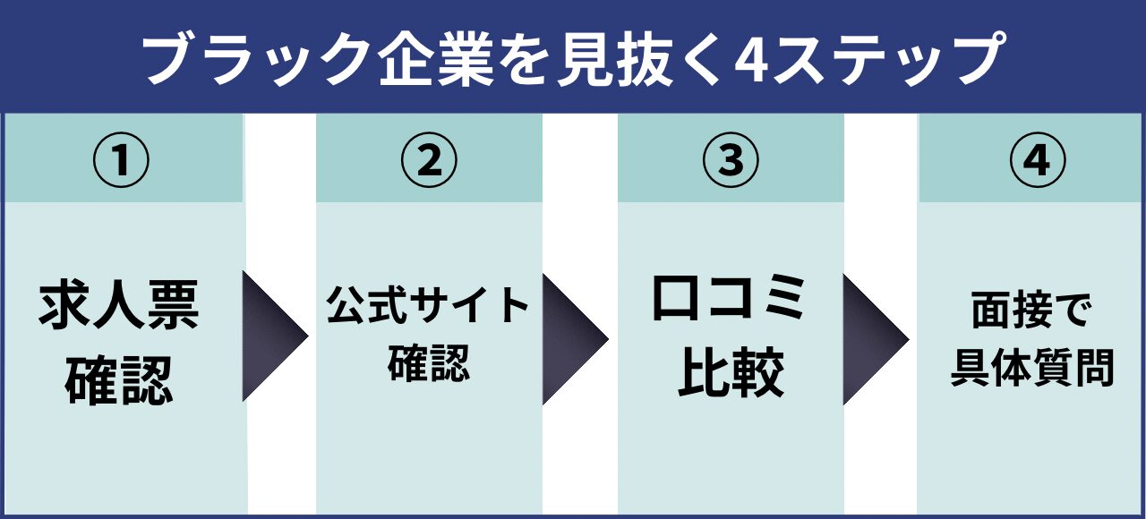 完全に見抜くのは難しいですが、「ブラック企業 見抜く方法」として有効なのは以下の4点です。
